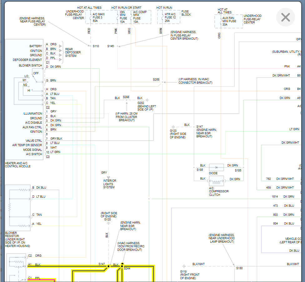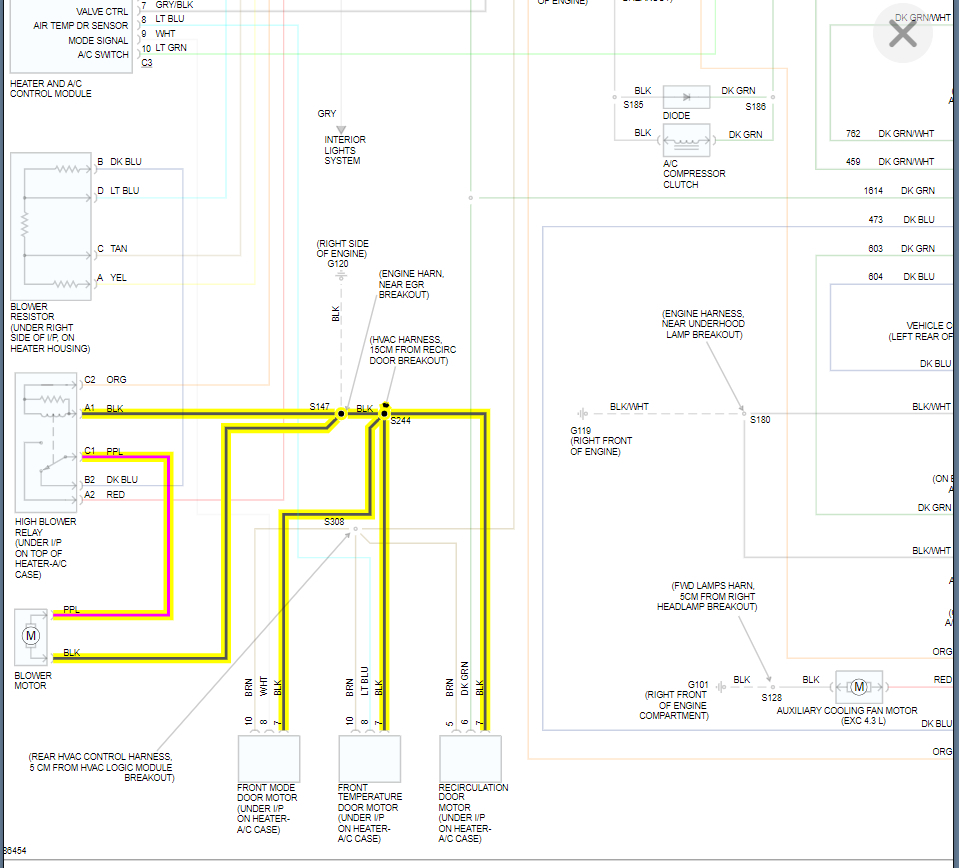 Below you will find the wiring diagram that we need in order to find out if the blower motor is getting proper voltage.