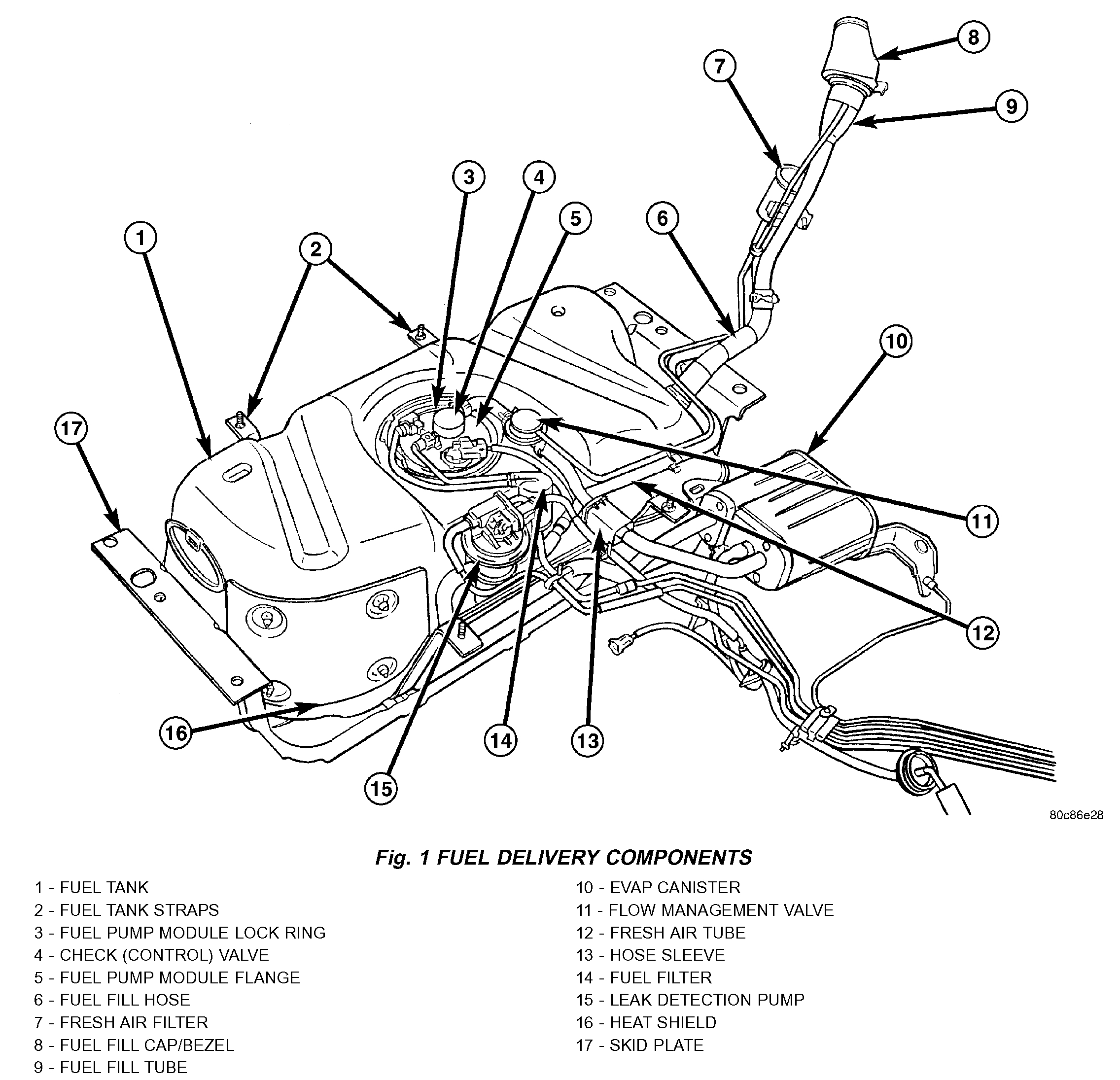 If equipped with an access plate, fuel tank removal will not be necessary for fuel filter removal. Access is from rear cargo area.