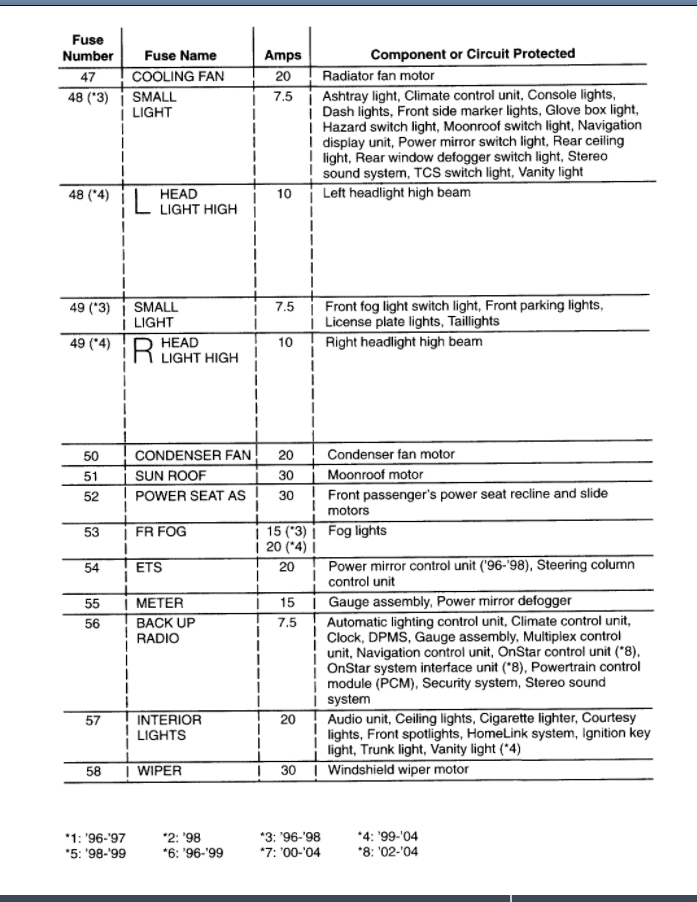 5 - 20 Amp A/C Clutch, Heated Seat (Premium Package U.S. And All Canada)
