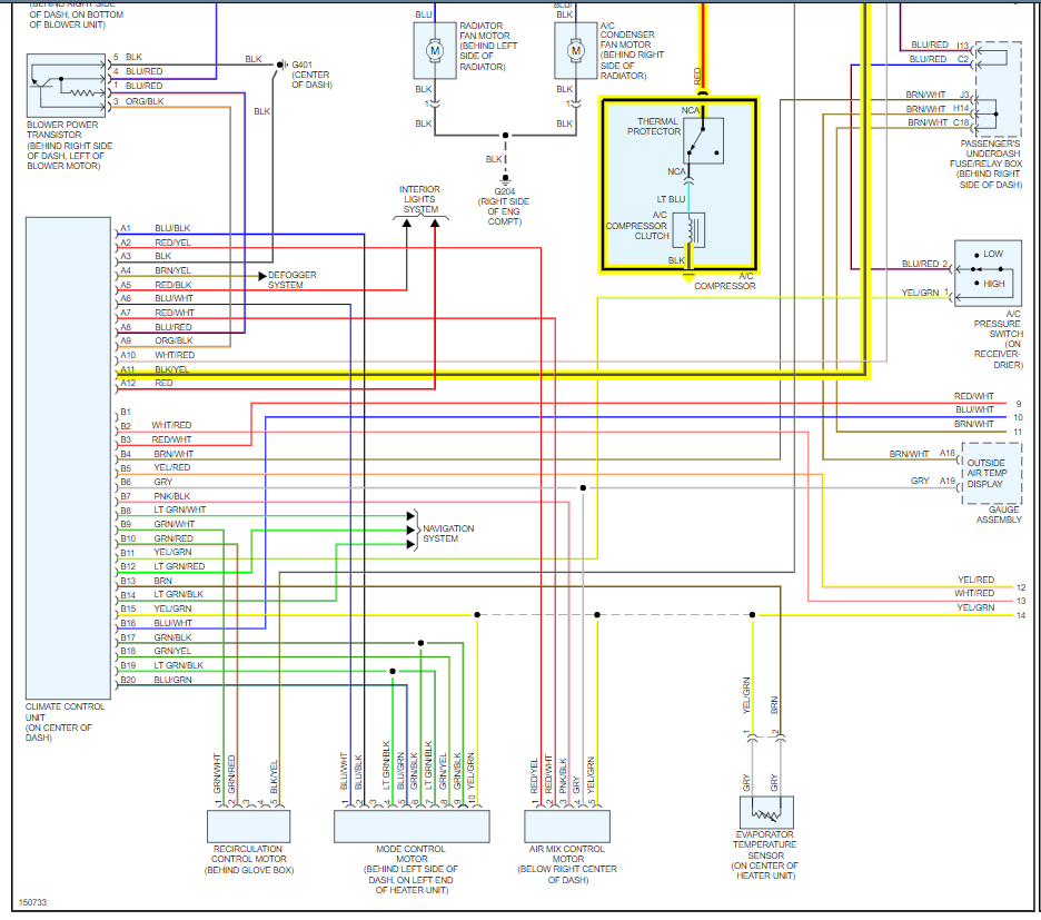 Actually when the car is running neither the A/C nor the fan are working. The A/C is charged (I have checked) but the fan isn't even blowing when the A/C isn't on. Could this be a fuse? Or a connection? Your help would be appreciated.