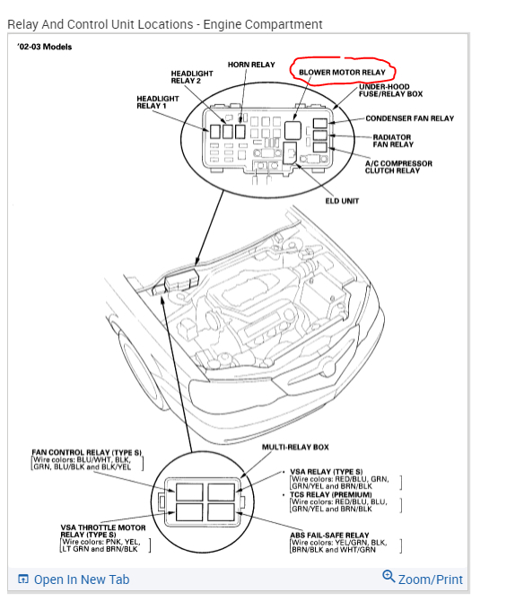First check the relay, it is located in the under-hood fuse box (see diagrams below).