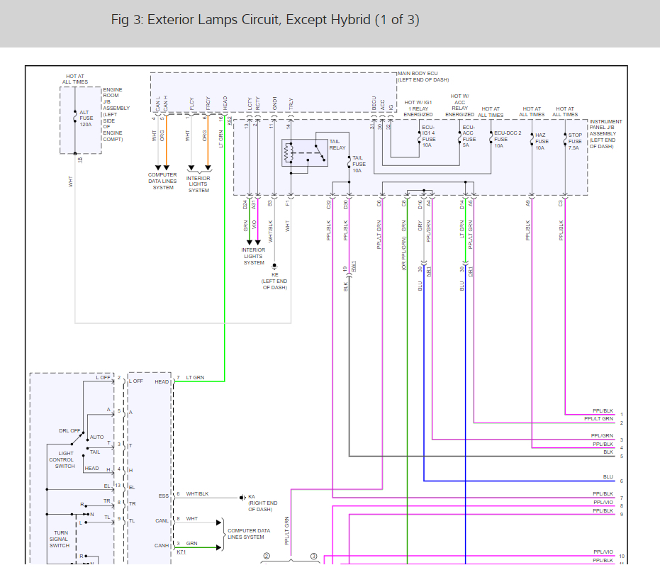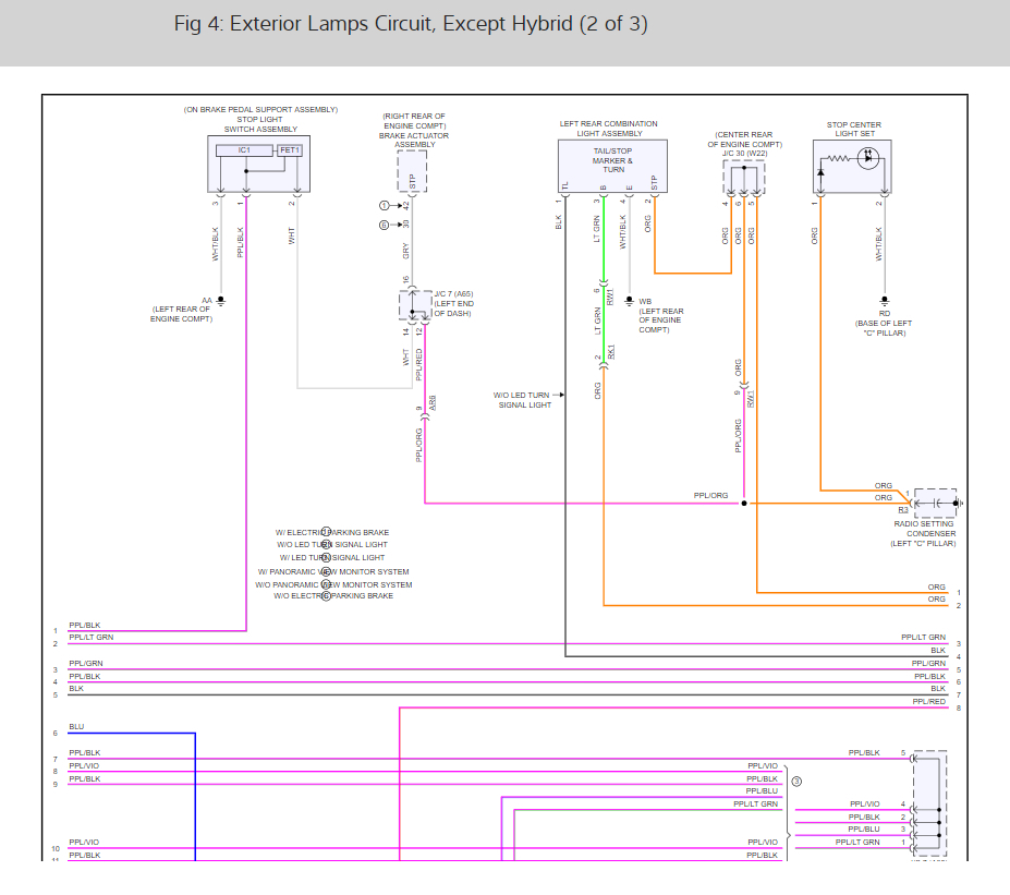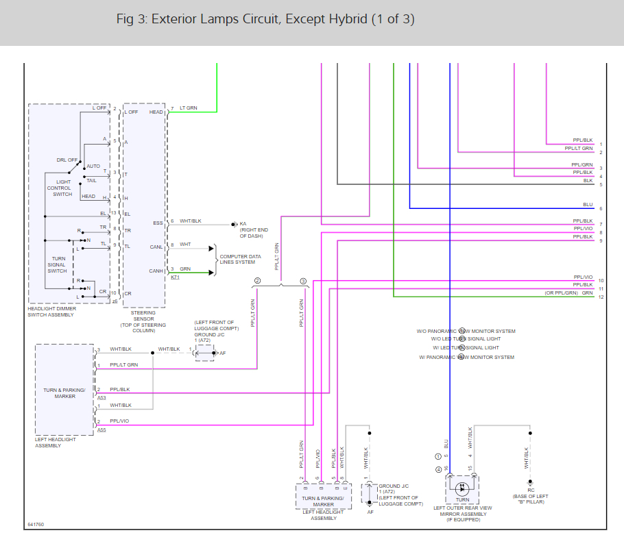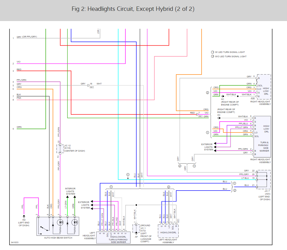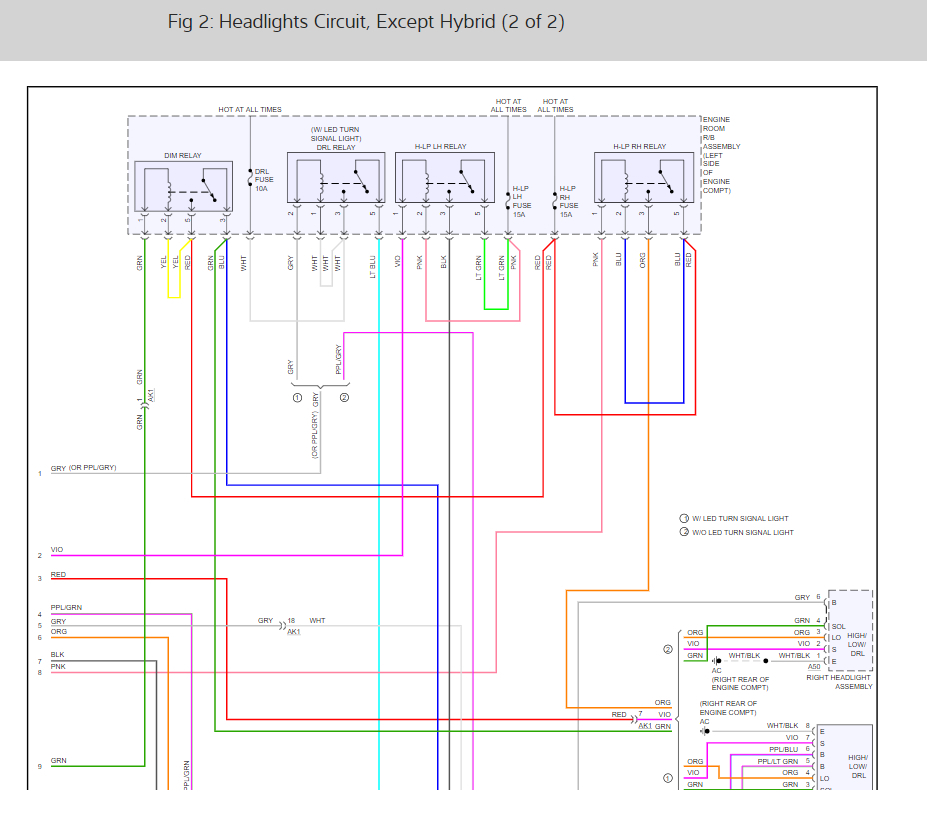 I have the car listed above (XSE), and the front light assembly consist of one cable hardness. I don't know which wire out of the 9 stranded wires are for the turn signal so I can tap into for the adding fog light and LED turn signal kit.