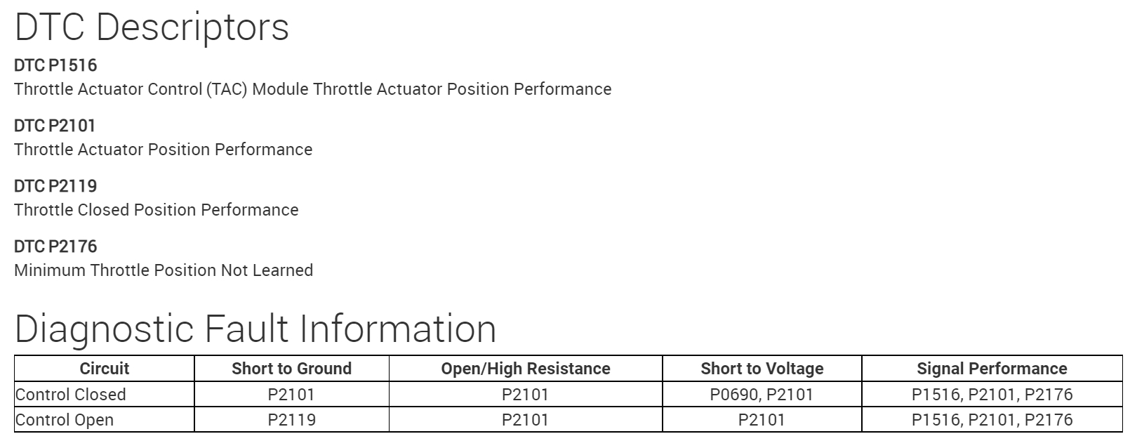 And can you tell me the codes you go for the throttle body and any other codes? The code numbers specifically.