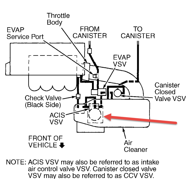 I bought this car with a K&N Typhoon Air Tube aftermarket air cleaner kit. The problem I am having is there is no original air cleaner assembly and since the previous owner is unknown to me, In the description, you have a PWM vsv and the VSV on the bottom. The PWM has air hoses going to it, where the VSV below it does not. I have no information or any hanging vacuum lines to where I can connect the two ends off. I figure if it has an electrical connector to it, it is a functioning solenoid. Even with the description of the vacuum lines on the underside of the car's hood, I still have no idea where these ends are to be connected. I currently have a check engine light on and yes, it has a rough start. From the previous diagram, the VSV was connected to the air cleaner assembly. Since I cannot see that as a reference, I do not know where the new lines from the VSV will go. Also, with it like it is now, it has a loud hissing sound, like a loud air line leak from a compression tank. It should not be sounding like this. Pictures help. If you can tell me where to reconnect or search for the lines that connect to what other end. Id add a file image, but it is too big unless you know how to send PDF files of 8,000. It has three to four pages is why.