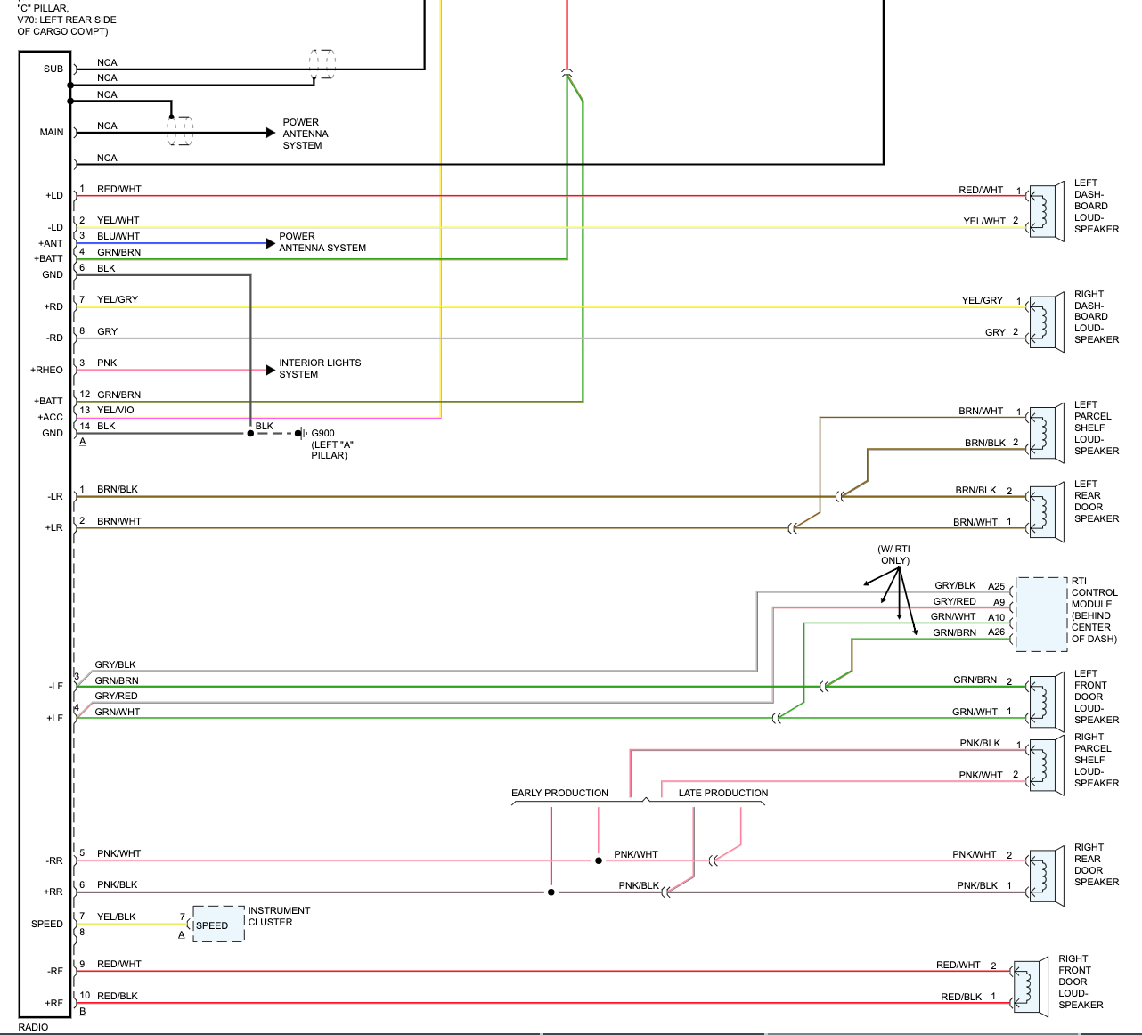 I have attached the wiring diagram showing the power and ground wires to the radio (for the version without amplifier)