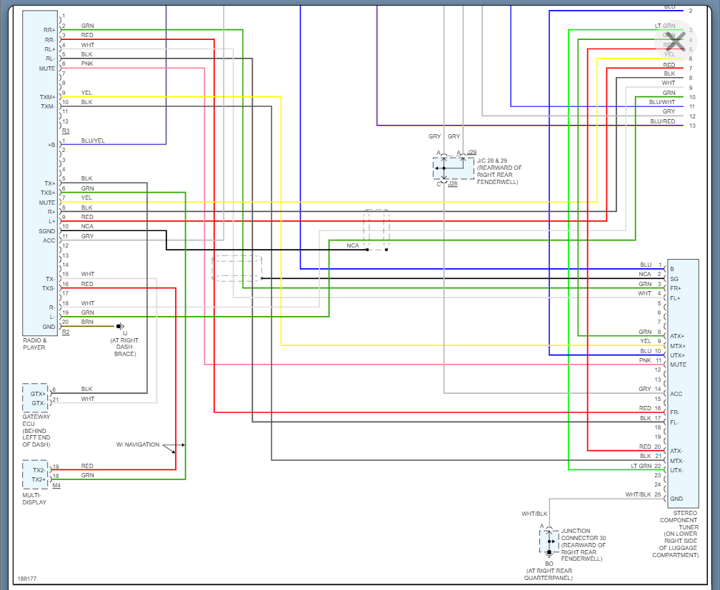 There is no amp turn on wire, that is the problem. It doesn't use a common wire where a 12-volt signal turns it on and removing it turns it off. Instead, it uses a computer signal that turns the power on, and another that turns it off, along with other signals to set the balance and other settings, all on a two-wire network that nobody makes an interface for. Even the base stereo uses those command signals between the units and not a simple on off control like most cars use. That is why Crutchfield even warns not to replace the stock stereo.