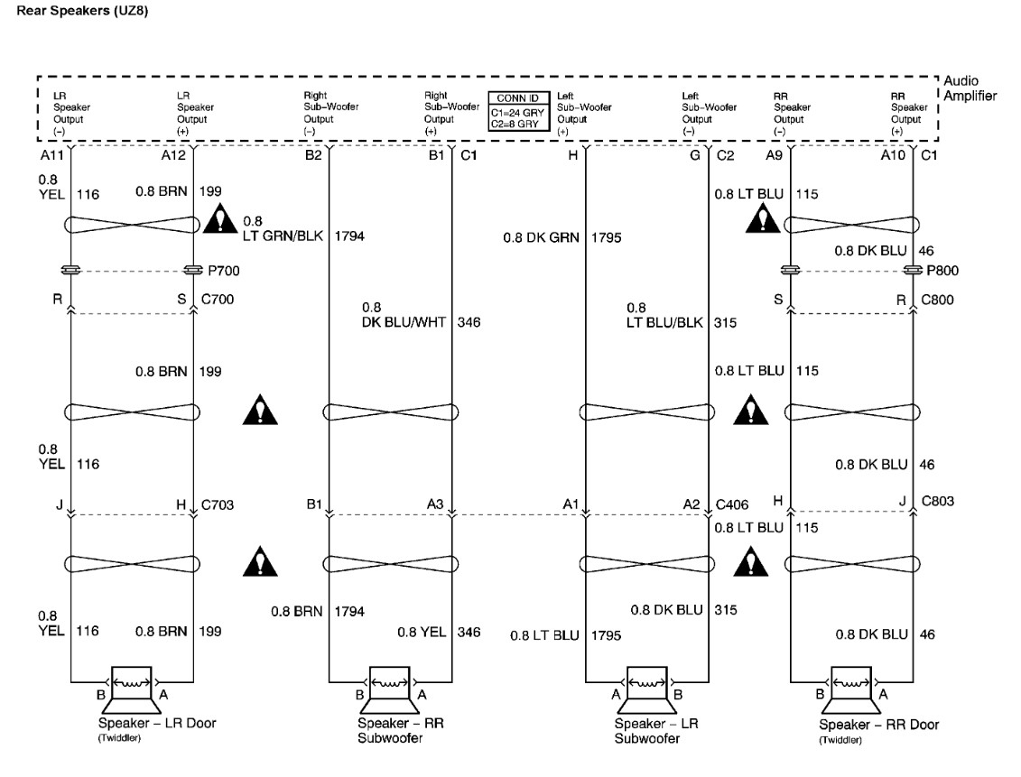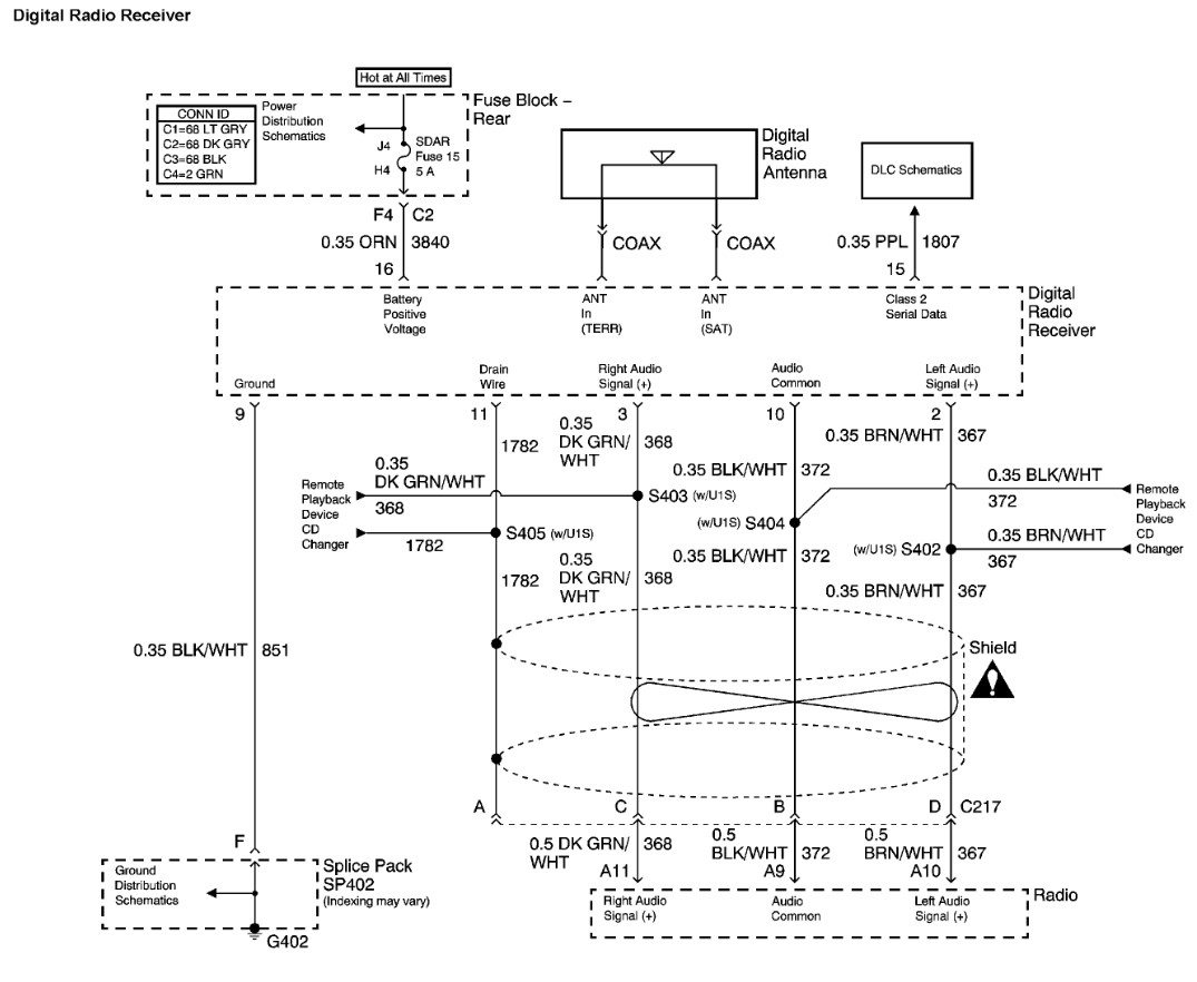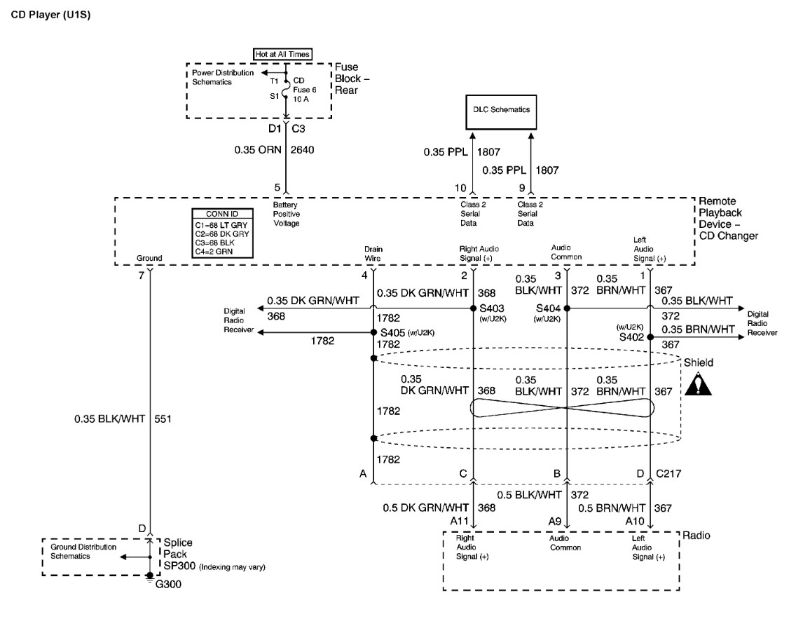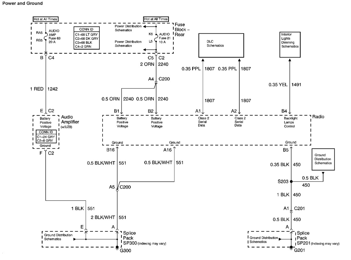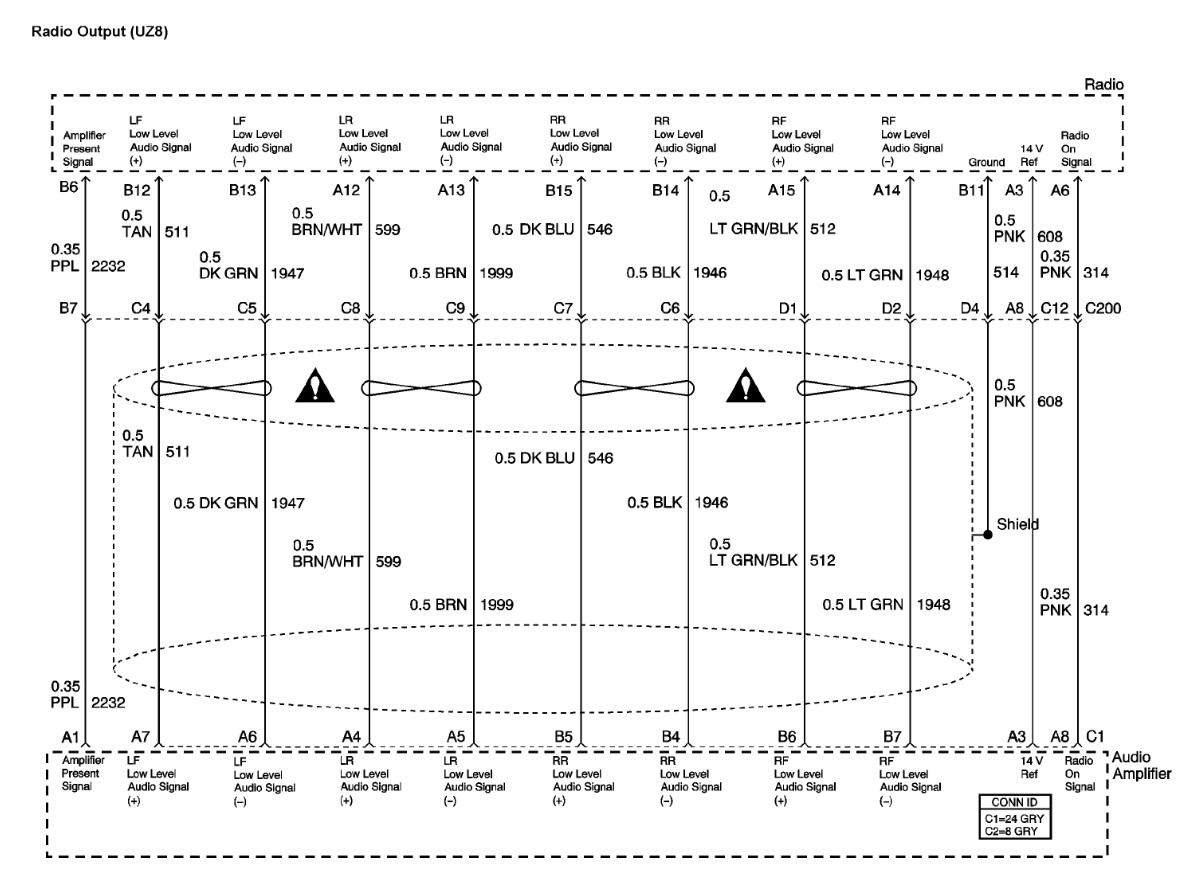 The attached are the diagrams for both the base and full optioned systems. The first 3 are the base radio without an amp. The others are the amp and digital (xm) modules. The base radio power and outputs are the same with the amp, they just go to the amp instead of speakers.