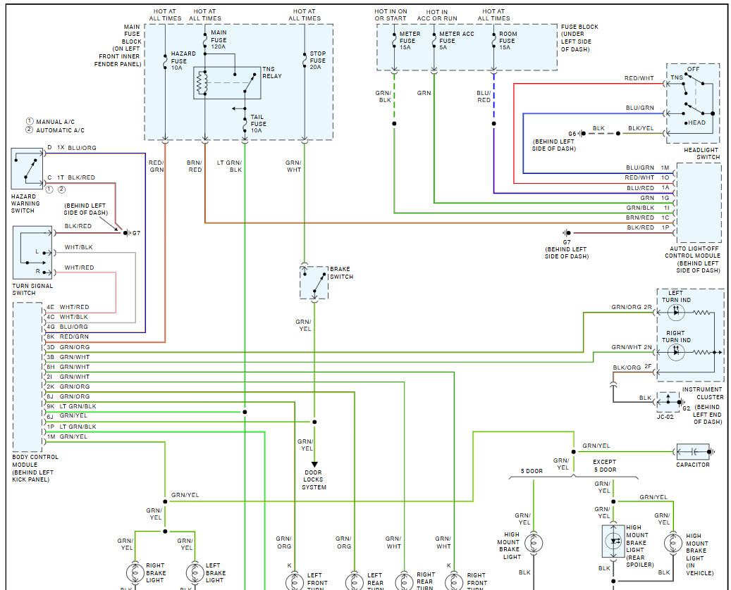 Okay, so I hate having people do this to me, so I apologize ahead of time, but I am coming into this situation after things have already been done. My landlady purchased an aftermarket stereo for her vehicle listed above and she got the wiring harness and everything got everything wired up, but now her taillights are not working. I noticed in the factory stereo that there was a connection for the actual stereo wiring harness and then there was a smaller one that according to her is responsible for hazard lights and the AC controls and all that and I don’t know if that wasn’t hooked up correctly and that’s why her tail lights are not working now, but if it is possible to get some kind of a wiring diagram so that I can actually go through these wires that she’s got here and make sure that They are connected correctly that would be great. On another note, I actually popped her hood to look at the fuses and saw that where the tail light relay is that was there but there weren’t the 210 amp fuses that are supposed to go right next to it according to the diagram underneath the fuse box Lid so I went and had her go to the store to get some new fuses. She said she was going to pick up a new relay too just whatever she wants to spend the money that’s on her but in my head, I would think that would have more to do with her taillights not working. If you can confirm this, I would greatly appreciate it. Sorry for the novel here but look forward to hearing back from you with any of your suggestions and or ideas.