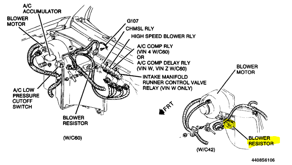 If you look at pic 1 below, I highlighted the blower motor resistor. Replace this part.