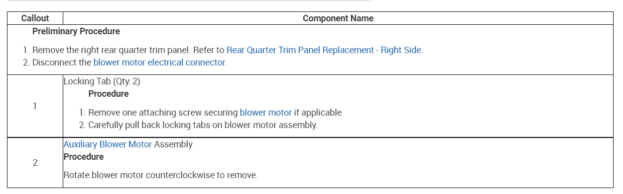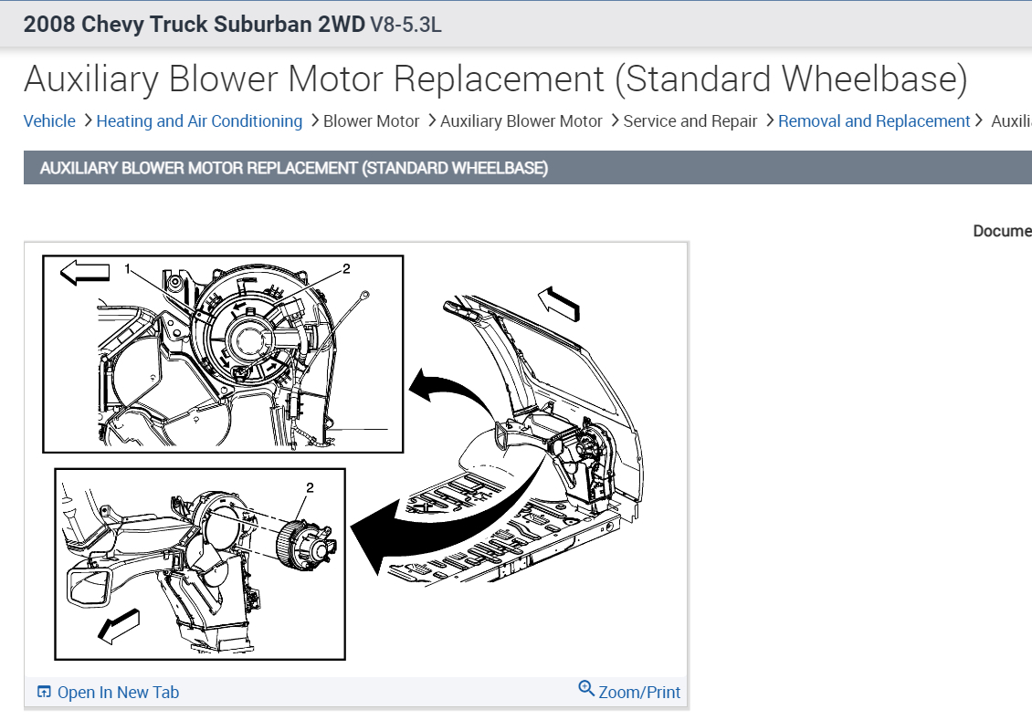 This happens when the rear blower motor goes out, but to be sure we should check the fuses (rear HVAC 30 amp) in the interior fuse panel. If it's okay, here are the instructions on how to change the blower motor out in the diagrams below: