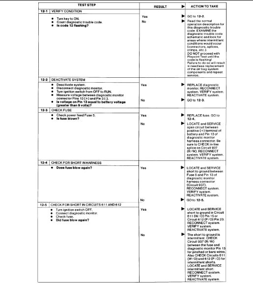 The diagnostic monitor measures the voltage at Pin 13 of the diagnostic monitor connector. Voltage at Pin 13 should be equal to battery voltage. If the voltage measured at Pin 13 drops to less than 9 volts, the diagnostic monitor will flash out Diagnostic Trouble Code 12.
