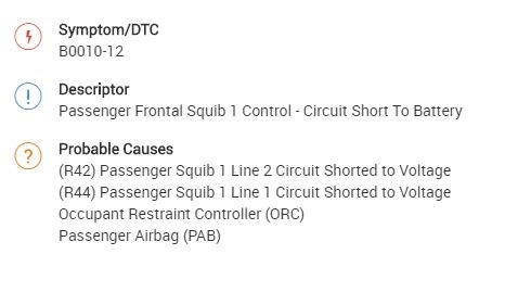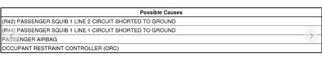 Repair the (R42, R44) Passenger Squib 1 circuits for a short to ground.