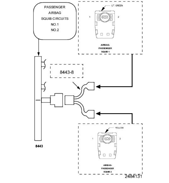 1. Disconnect the Passenger Airbag Squib harness connectors.
