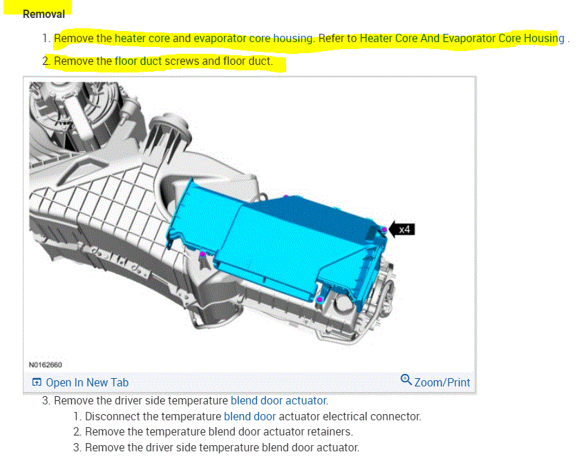 With that, pics 1. 2. And 3 are the directions for actuator replacement. The remaining pics are for gaining access to the actuator. You will need to drain the coolant and recover Freon from the A/C system, remove the front seats, and the dash.