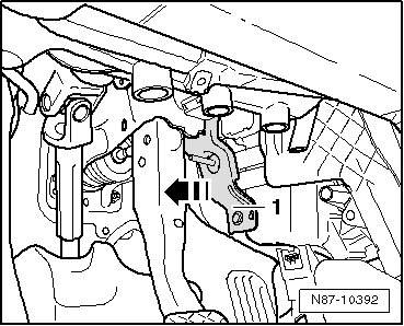 - Push the bracket toward the brake pedal - arrow - and fasten it there using a cable tie.