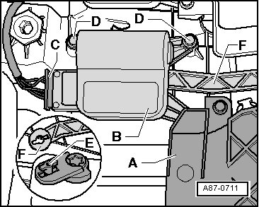 - Remove bolts - D - (1.4 Nm) and remove Left Temperature Door Motor (V158) - B -.