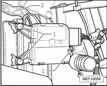 - Remove securing bolts - 1 - and remove Right Temperature Door Motor (V159).