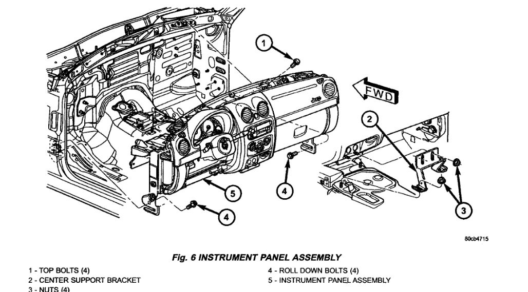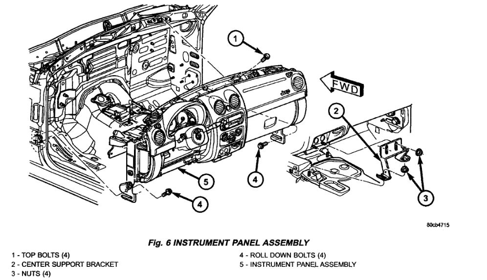 (20) Remove the HVAC bolt at the lower outside corner of the glove box opening. (Fig. 5)