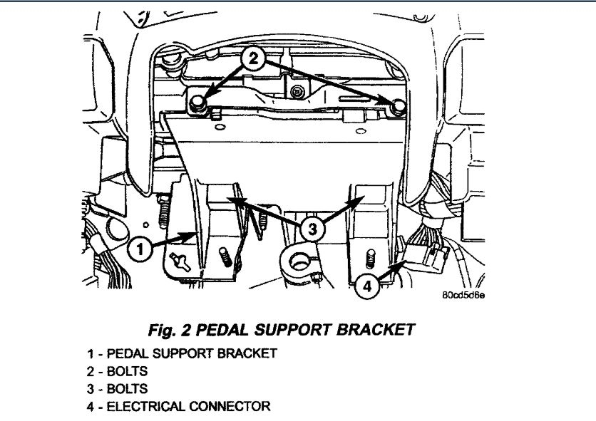 (12)Remove the two bolts at the front of the pedal support bracket. (fig. 2)
