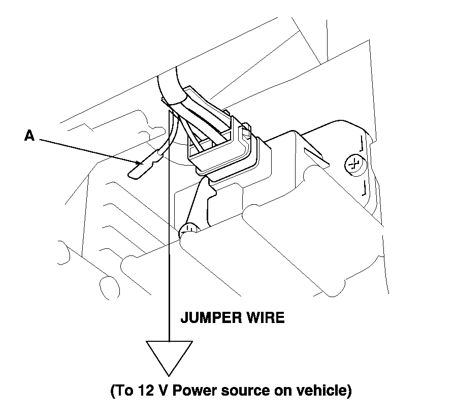 6. Make sure the YEL wire is completely isolated, then supply 12 V to cavity No. 1 with a jumper wire.
