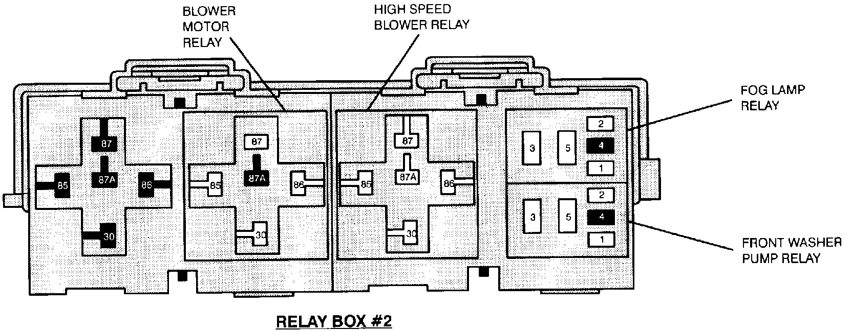 Your vehicle has a separate rear blower motor that works independently from the front. I will include a wire diagram for the entire HVAC system for your vehicle so you can check fuses and other basic tests. The blower motor relay is in the engine compartment in a small fuse/relay box, I included a picture of the relay box.