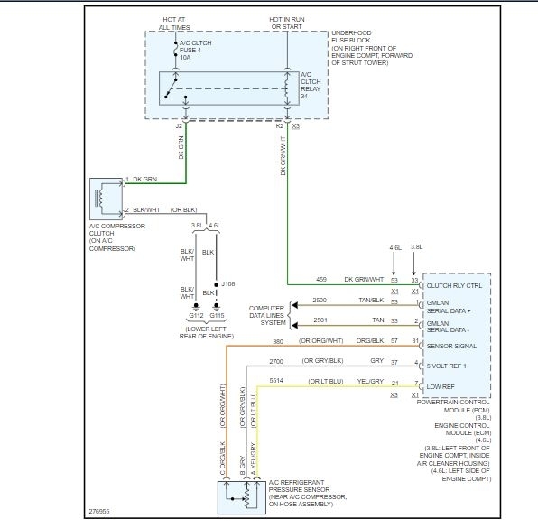 No cold air from conditioner. When engine running and compressor clutch is turning I have no pressure in the low side of the system. When engine is stopped I then show normal pressure in the low side. What may be the reason for these pressures?