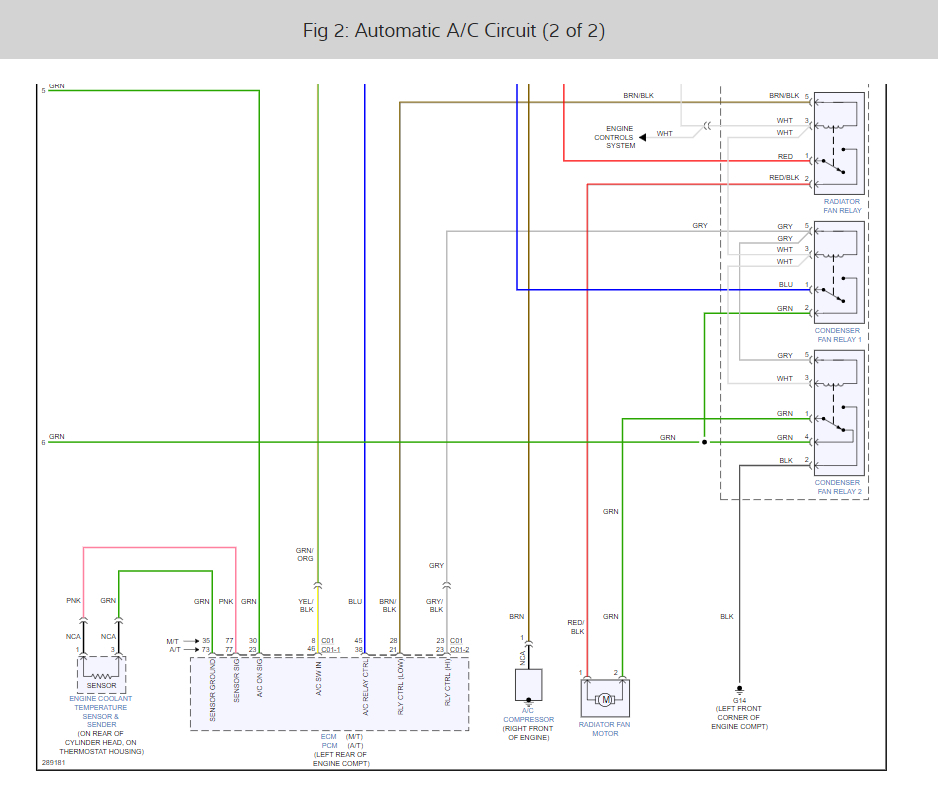 Dear sirs, I had been working on my car changing the timing belt, water pump and belts. While finishing up and topping up water one of my tools rolled off the top of the motor and contacted both battery posts and shorted it for a split second. This where my problem lies I think? The A/C wouldn't come on.I checked the low pressure charge, it was too low, I charged it up.I checked the relay first, took cover off relay and found the contacts black and burnt. So I replaced it. Still nothing.I then checked power at fuse block. Power is there.I checked the condenser fan, it works but doesn't come on automatically. Controls in the cabin and fan motor work fine. The car will not blow cold air!The big question does the PCM of my car control any functions of my A/C system?Did it get damaged when I shorted the battery?The car except of A/C works just fine.I cannot fine an answer whether the PCM controls my A/C on the internet any where! Please help if you can. PS, your videos are the best on all of YouTube! Thank you so very much, Paul Taylor