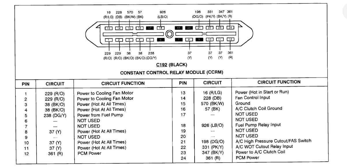 Replaced the suction line and dryer. Vacuum held over an hour, recharged with correct amount and now blows cold air and compressor cycles. However my fan (radiator fan) won't come on. Followed test procedure from my. Streetonline and it points to CCRM. Ect working, fan works when jumped, voltage into CCRM, no voltage at fan and no voltage from CCRM. I appear to have a re-manufactured CCRM and the part number label is missing. Can I get a correct pn by using my vin? Thanks again for all your help.
