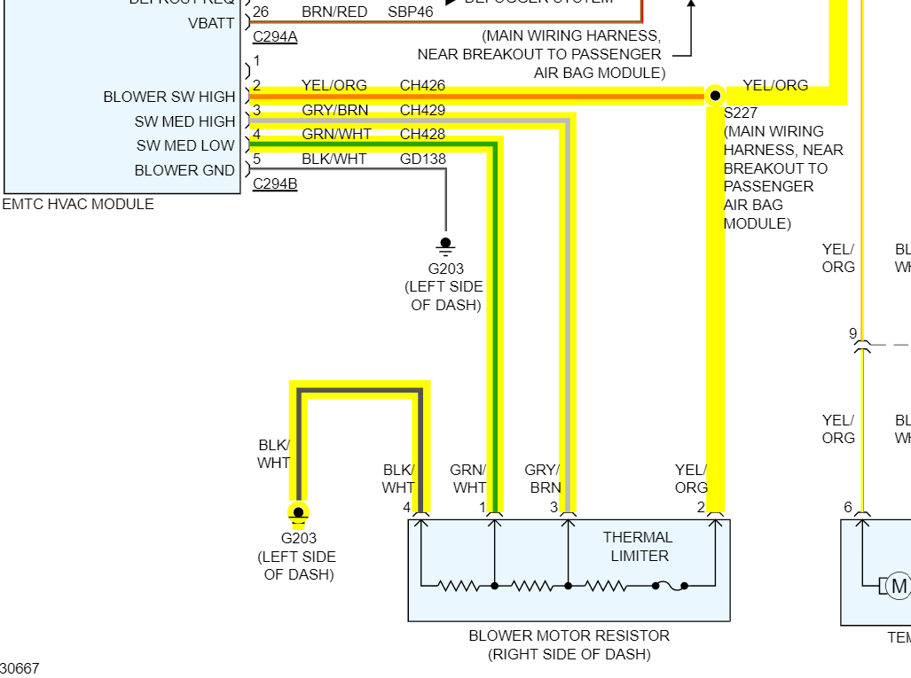 The first two diagrams are the Base blower motor set up, and the second two are the NonBase Blower setup with the Speed Control Module. You'll have to identify which system you have by the wire coloring. Both are next to the blower motor.