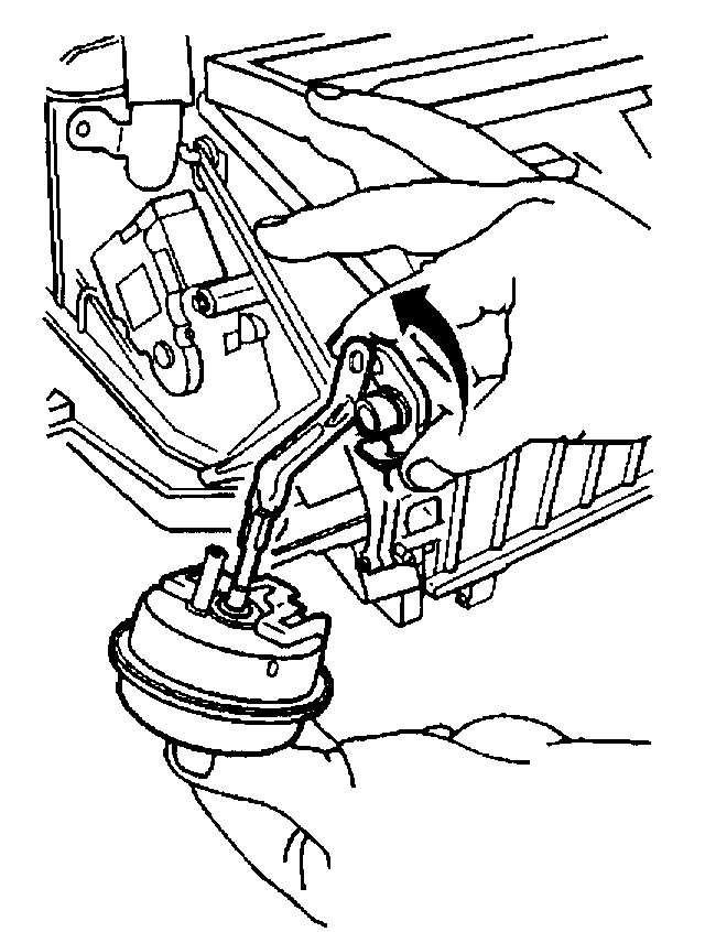 9. Disconnect the vacuum actuator pushrod from the mode valve lever and remove the vacuum actuator.