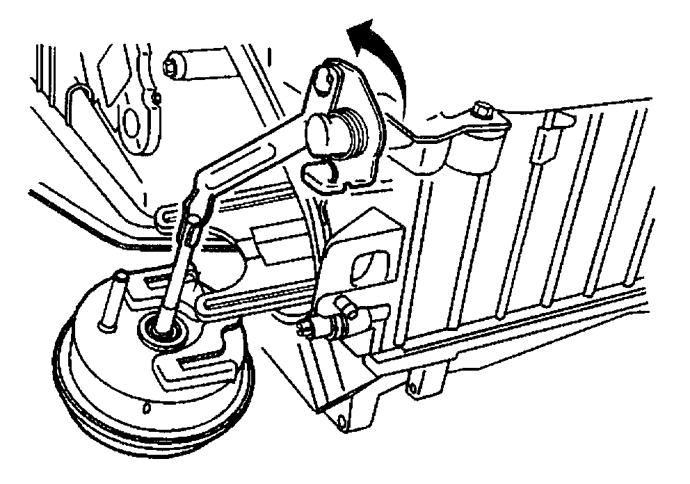 7. Carefully rotate the vacuum actuator toward the front of the vehicle until the actuator is released from the mounting pins on the HVAC module case.