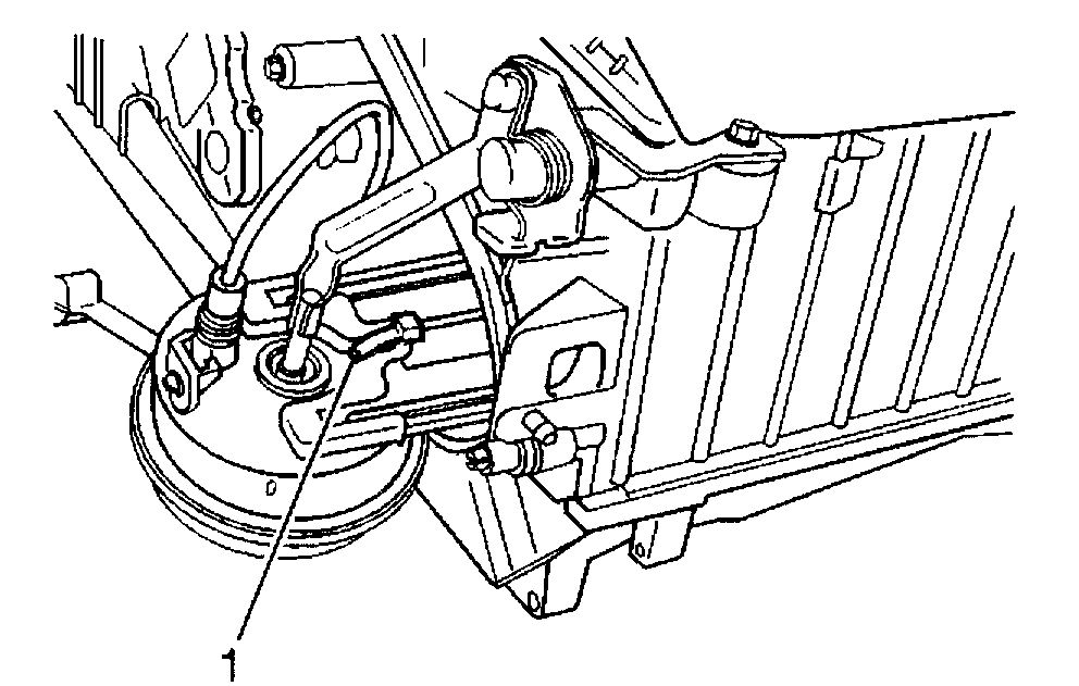 4. Cut the tie strap (1) that is on the back side of the mode valve vacuum actuator.