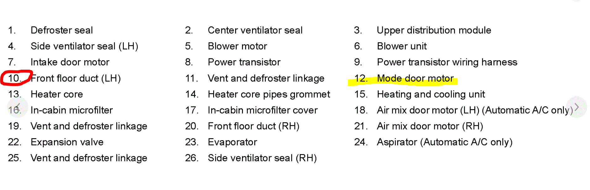 Air doesn’t blow out of the vents in the center of the dashboard. It only blows out of the vents next to the doors when the corresponding mode is selected. It sometimes also doesn’t switch between defrost and other modes right away. Which part needs to be replaced and where is it located?