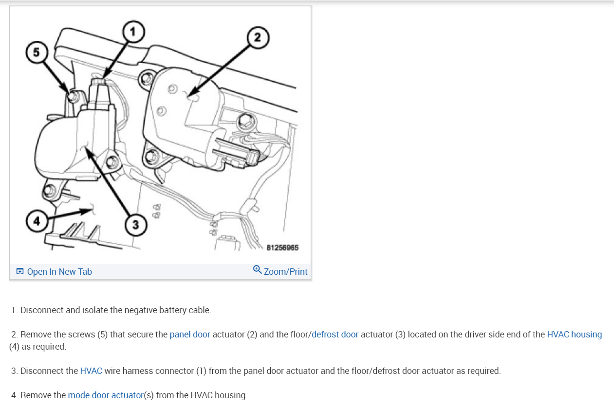 Okay. So, I have both hot and cold air blowing but it will only come out the vents in dash, I switch to defrost and nothing not even the slightest sound. I switch to floor and same thing, no action, no noise, nothing at all. I’m thinking it may be the Mode Door Actuator, also part 2 of a problem, when I change the temperature there is a Gawd awful plastic grinding noise coming from under passenger side dash, almost like the heater farts at me every time I change the temperature, so I’m thinking that this problem might be my blend door starting to strip because of the cheap plastic, but I could be wrong. Please let me know what you can to help, I really appreciate you guys, you all do a great job and are so knowledgeable!