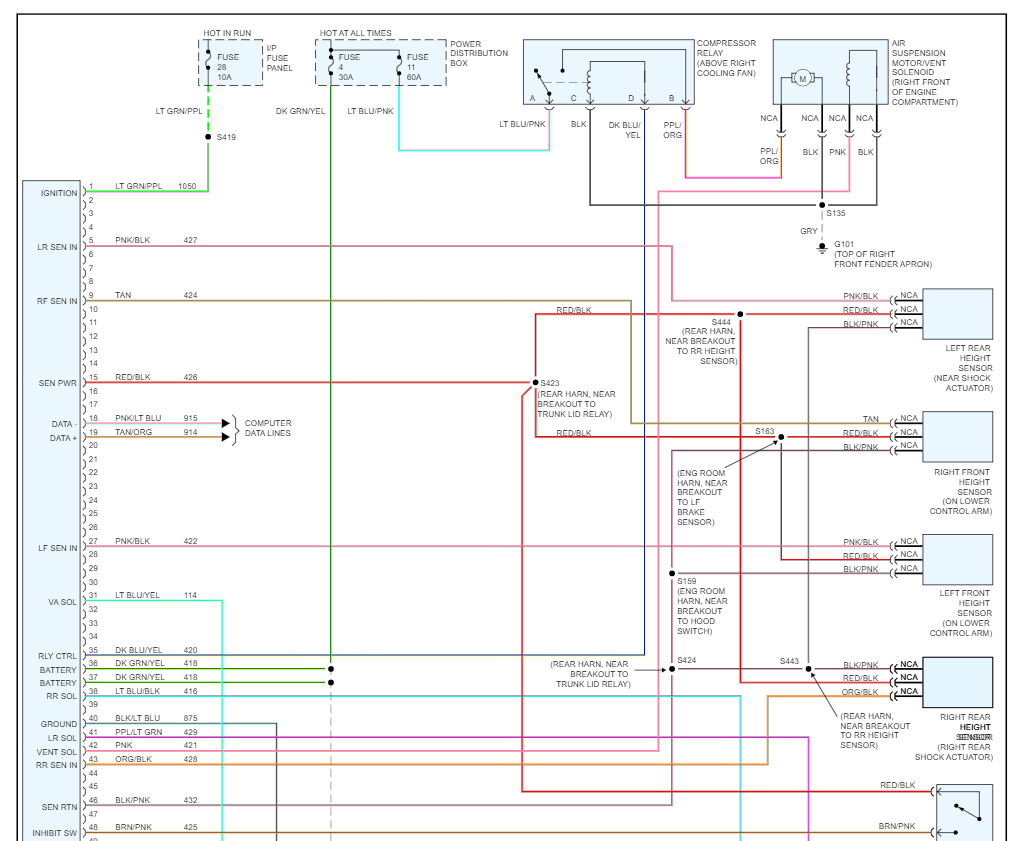 Here is a guide to help and the air suspension wiring diagrams so you can see how the system works: