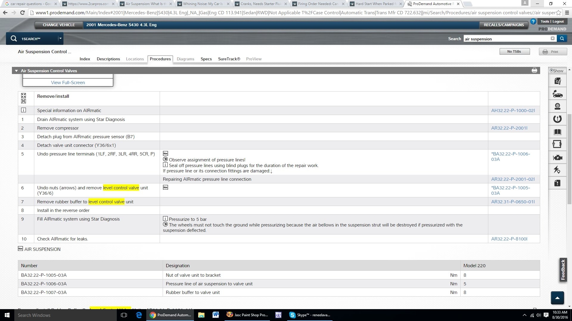 What is the procedure in replacing the valve block on the air suspension system?