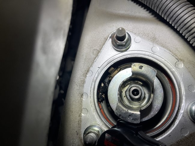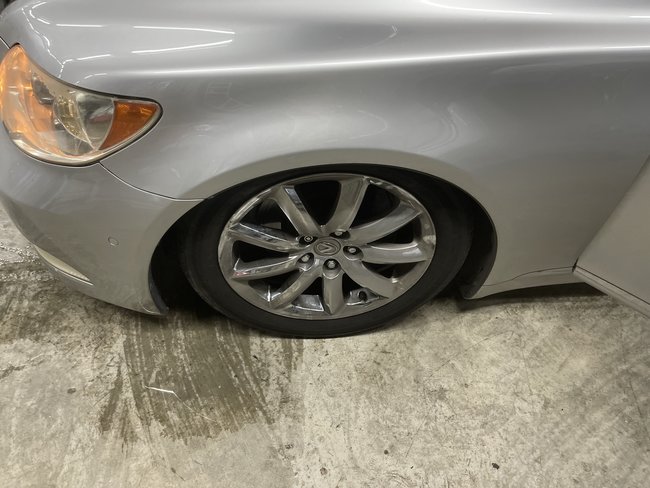I think the front right is over compensating for the left that way its much higher that it should. See if you can maybe adjust it down.