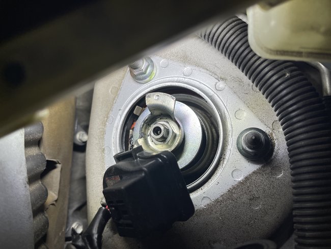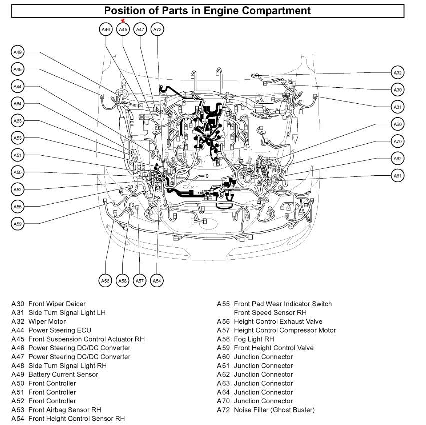 The compressor is inside the front bumper on the passenger side, below the headlight.