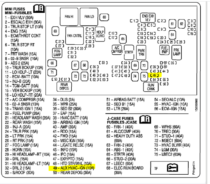 If you haven't already, check fuse 49 in the under-hood fuse box. make sure the fuse is good and confirm there is power to and from it.