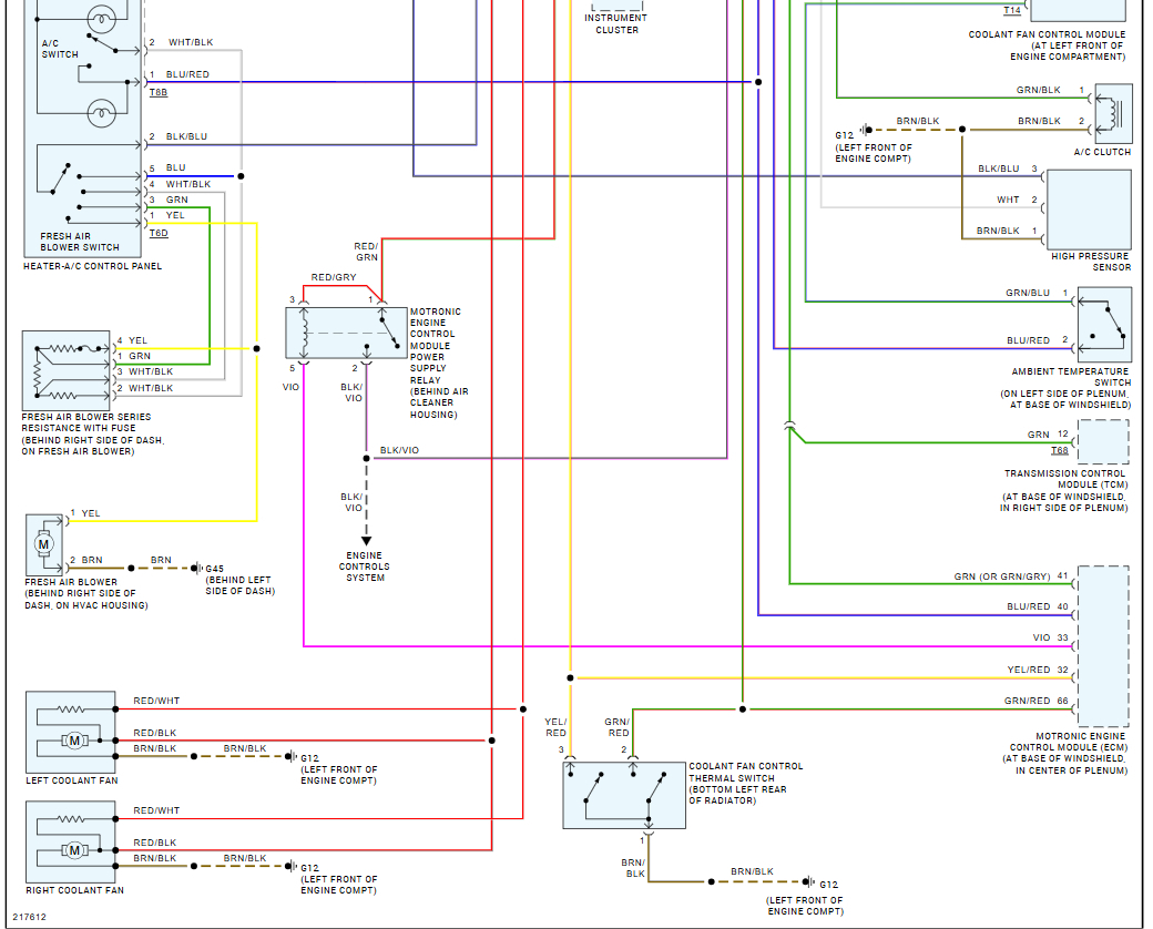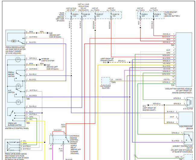 I would greatly appreciate your assistance in troubleshooting the issue. Additionally, please provide the wiring diagram for the A/C, as well as the locations of the relays and fuses.