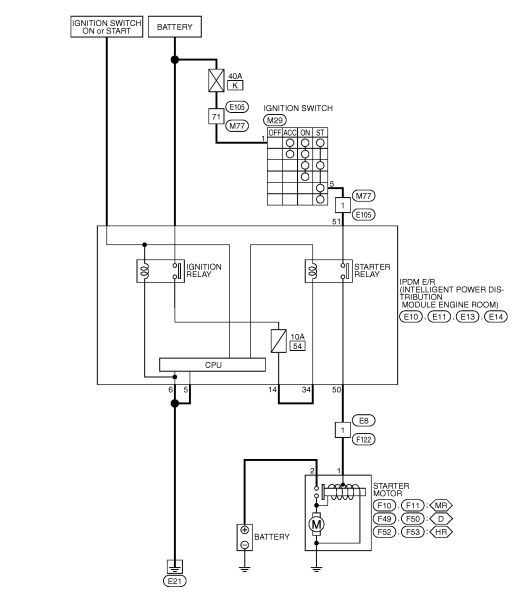 If no 12V is present when trying to crank the engine next check that fuse F54(10A) in the IPDM is still intact, see image 1 below.