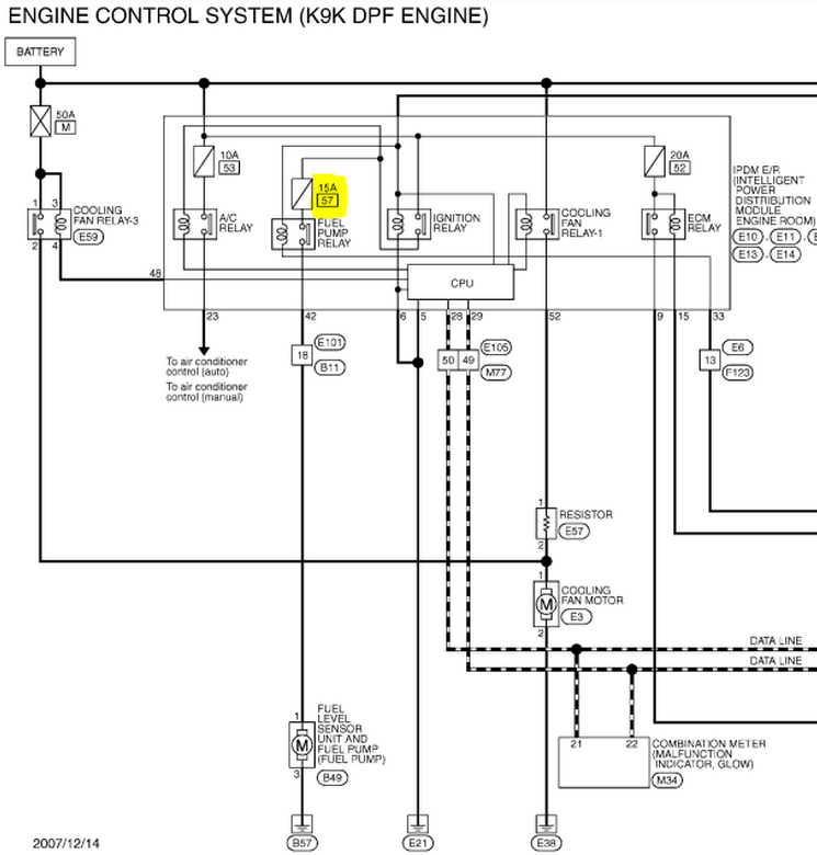 If the pump cannot be heard energizing next check that fuse F57(15A) in IPDM is still intact. See image 2 below.