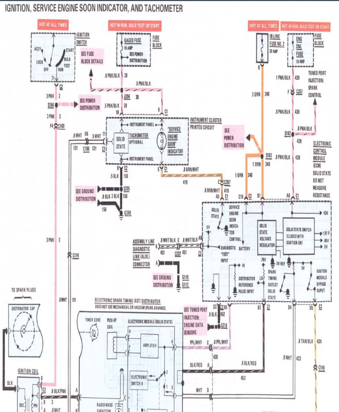 When jumpering pins one and 2 or a and B. Have check for voltage. And for a good ground, are those 2 pins? Have also disconnected the ECM And Probe pen A. To ground and check Engine light does not come on.