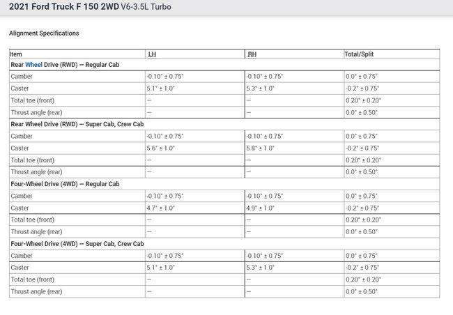 Hello Could Someone Tell Me The Alignment Specs Of A 1996 Ford F150 Rwd. It Has The 4.9 I6 Motor With A Standard Transmission. The...