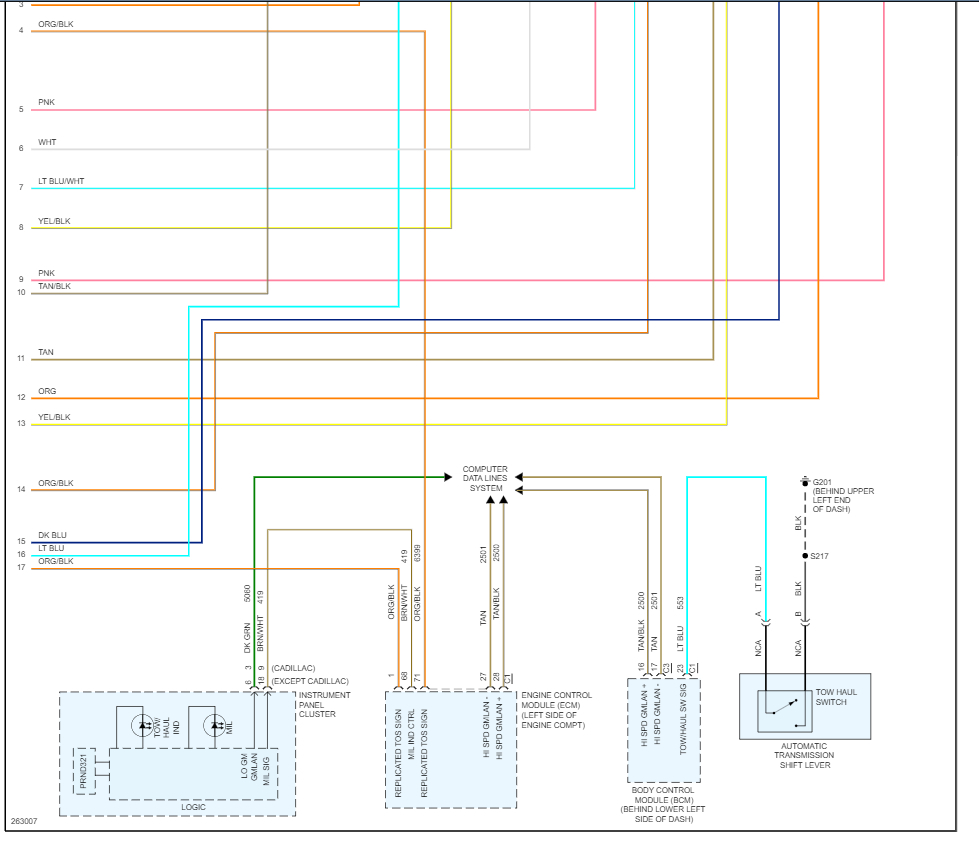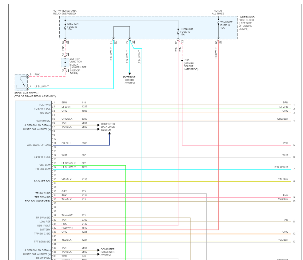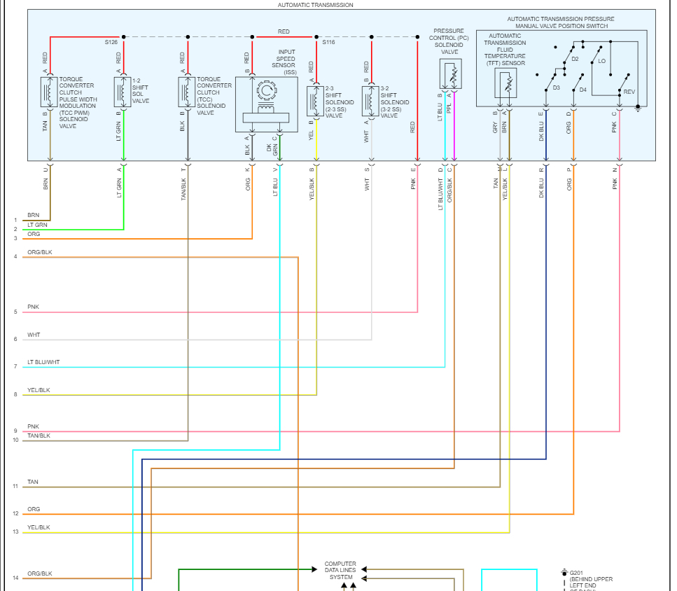 Also check the fuses# 34, 19 and 14 in the under-hood fuse panel. I have included the transmission wiring diagrams so you can see how the system works.