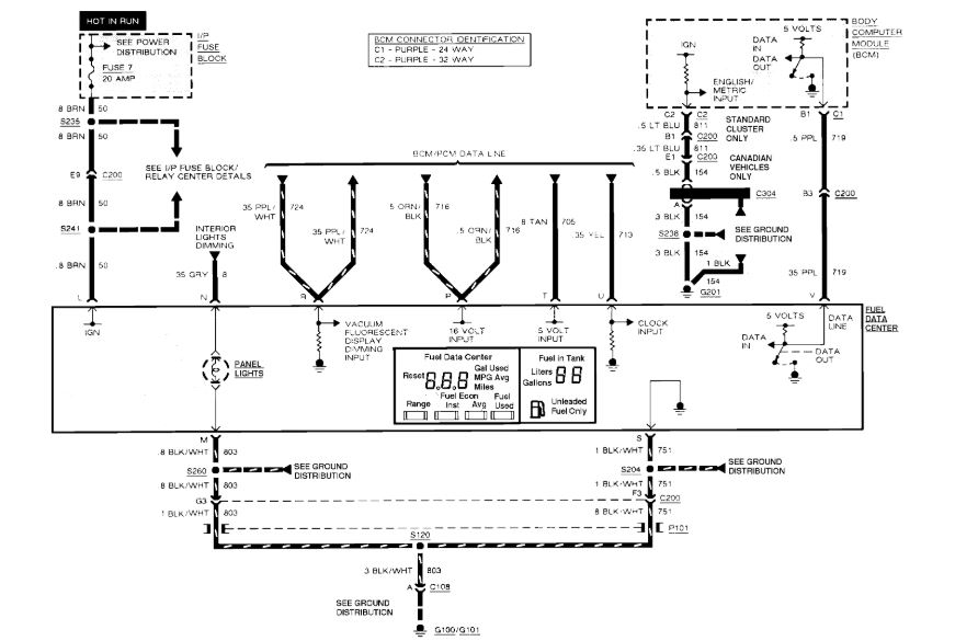 I am a 40+ year digital electronic tech but not an automotive one. I find the schematics less than adequate and scattered all over the place. It looks like the Climate Control module gets +5 and +12 volts. The instrument cluster schematic indicates a +5 volt input, and the fuel info center's schematic, I can't find.