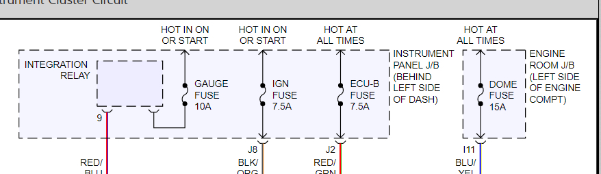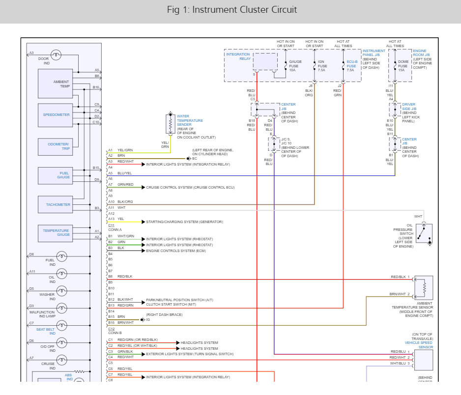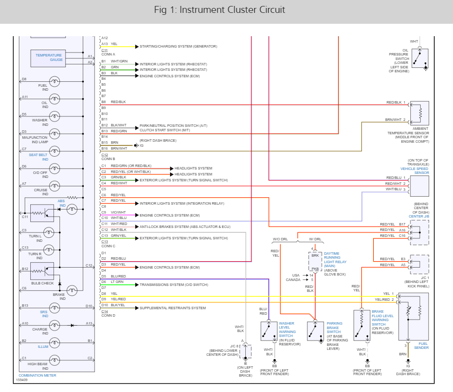 We need to check the fuses which are in the diagrams below. here is a guide to help check for power and if the fuse is any good. I have also included the fuse location and the cluster wiring so you can see how the system works.