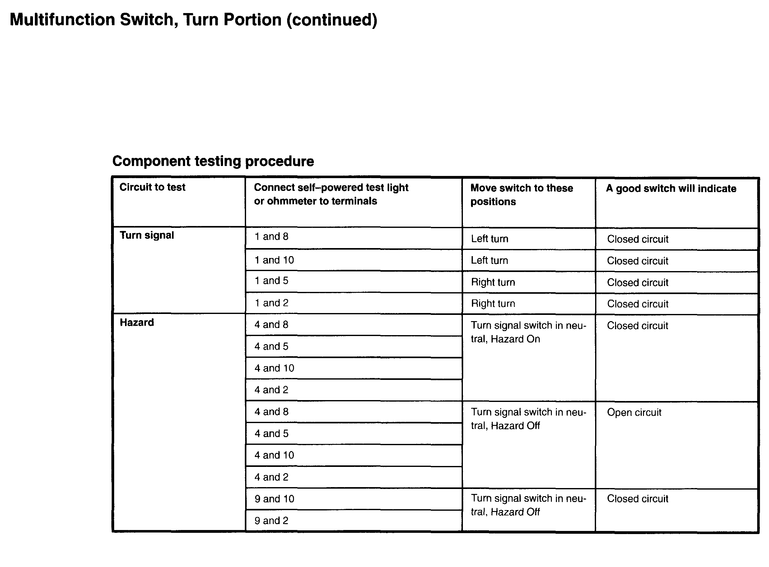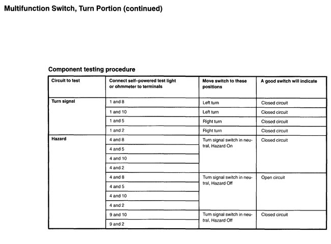 Vehicle Sensors and Switches Sensors and Switches - Lighting and Horns Turn Signal Switch Testing and Inspection Component Tests and General Diagnostics