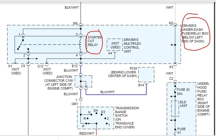 If you find there is no power to the smaller wire when the key is in the start position, next I would suggest checking the starter relay. See picture 1.