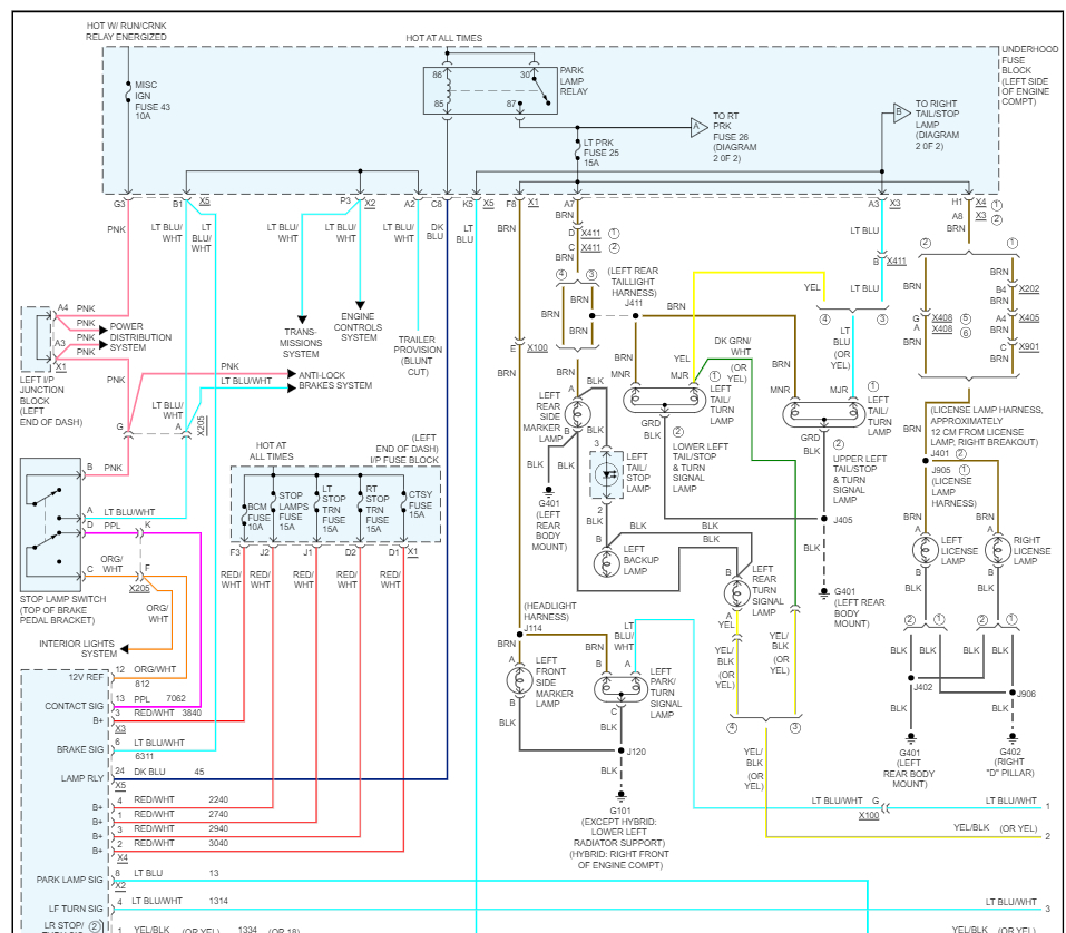 This first diagram shows the fuse you pulled (Stop Lamps 15A) and the Output wire for the Brake lamps themselves.
